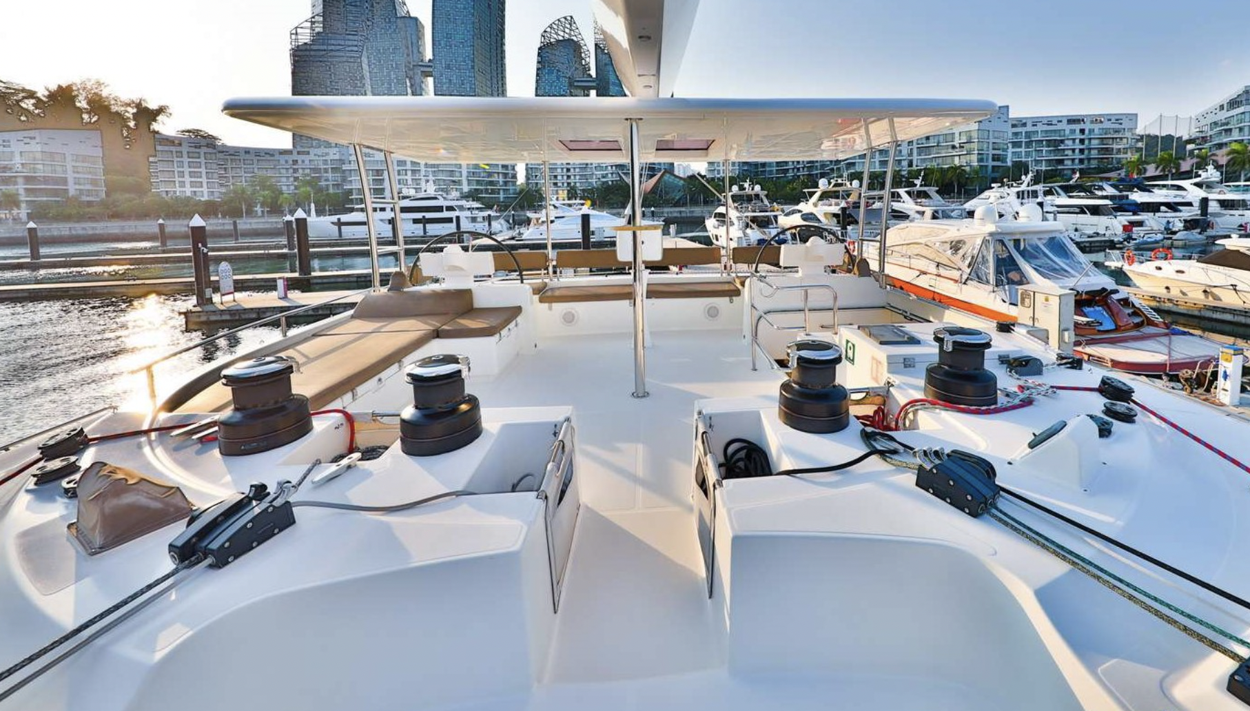 JYOHANA being Lagoon’s most popular larger sailing catamaran model, the Lagoon 620, features a modern and spacious open plan saloon and a huge amount of outdoor space for alfresco dining and relaxing.